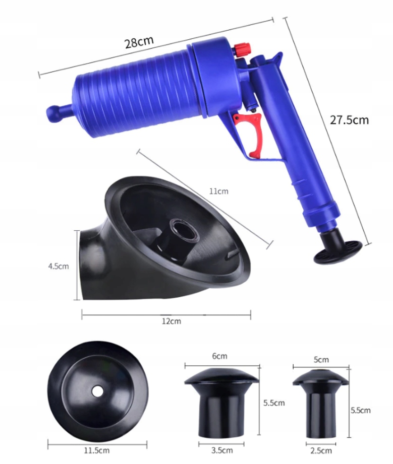 - Urządzenie do udrażniania rur działa na zasadzie sprężonego powietrza.