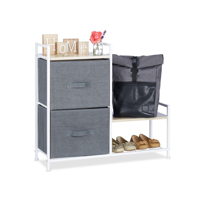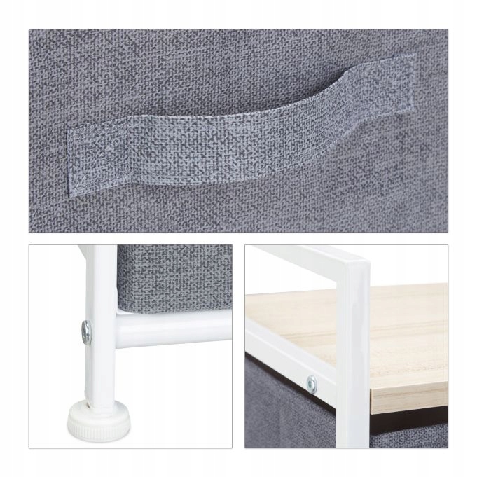 Nasz praktyczny regał z szarymi szufladami z materiału pomoże Ci zaprowadzić porządek w mieszkaniu w stylowy sposób. Nowoczesny sideboard składa się z białej, stalowej ramy z półkami z płyty MDF imitującej drewno. Elegancka komoda dostępna jest w różnych rozmiarach, dzięki czemu z pewnością znajdziesz także egzemplarz odpowiedni do Twojego wnętrza. Sam zdecyduj o ilości szuflad oraz kształcie, szerokości i wysokości wolnostojącego regału.