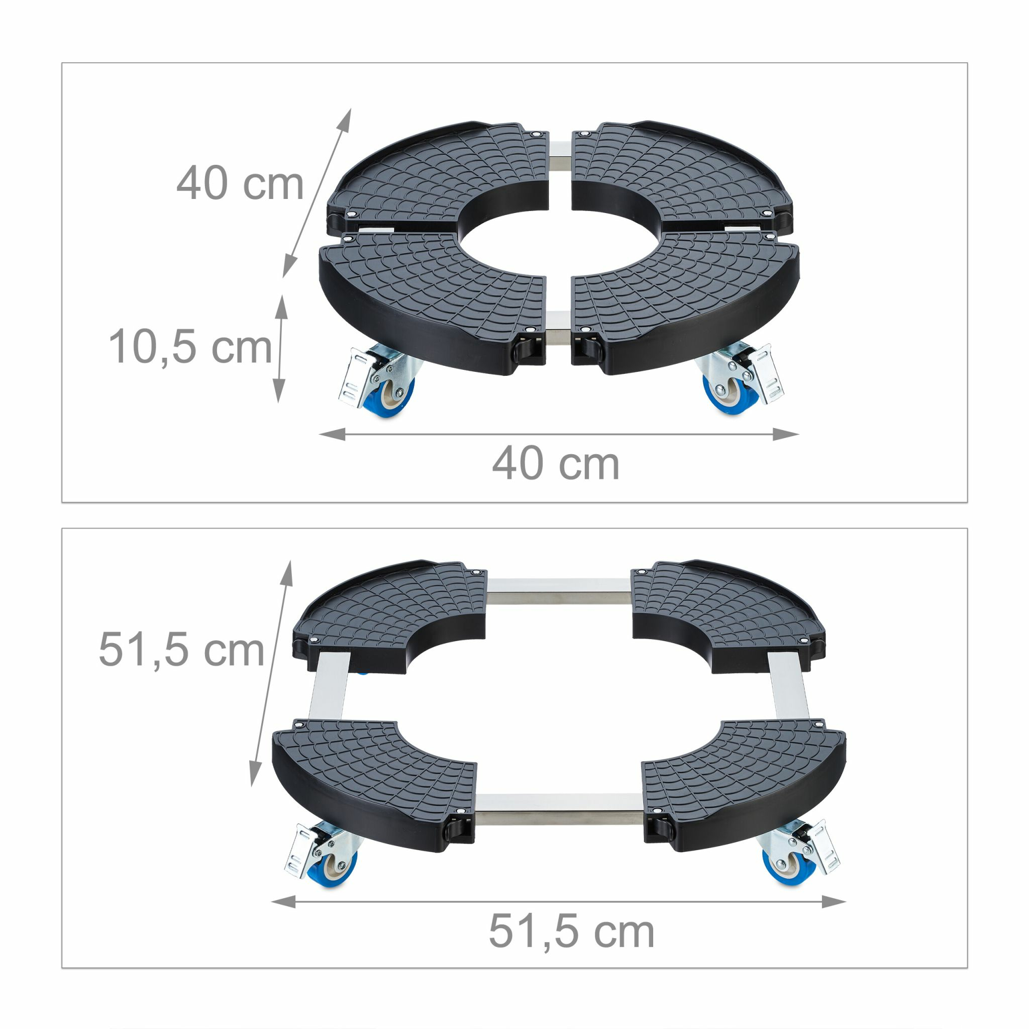 Szczegóły: Plastikowy wózek na rośliny – Średnica zewnętrzna: ok. 40–51,5 cm – Średnica wewnętrzna: ok. 18–35 cm