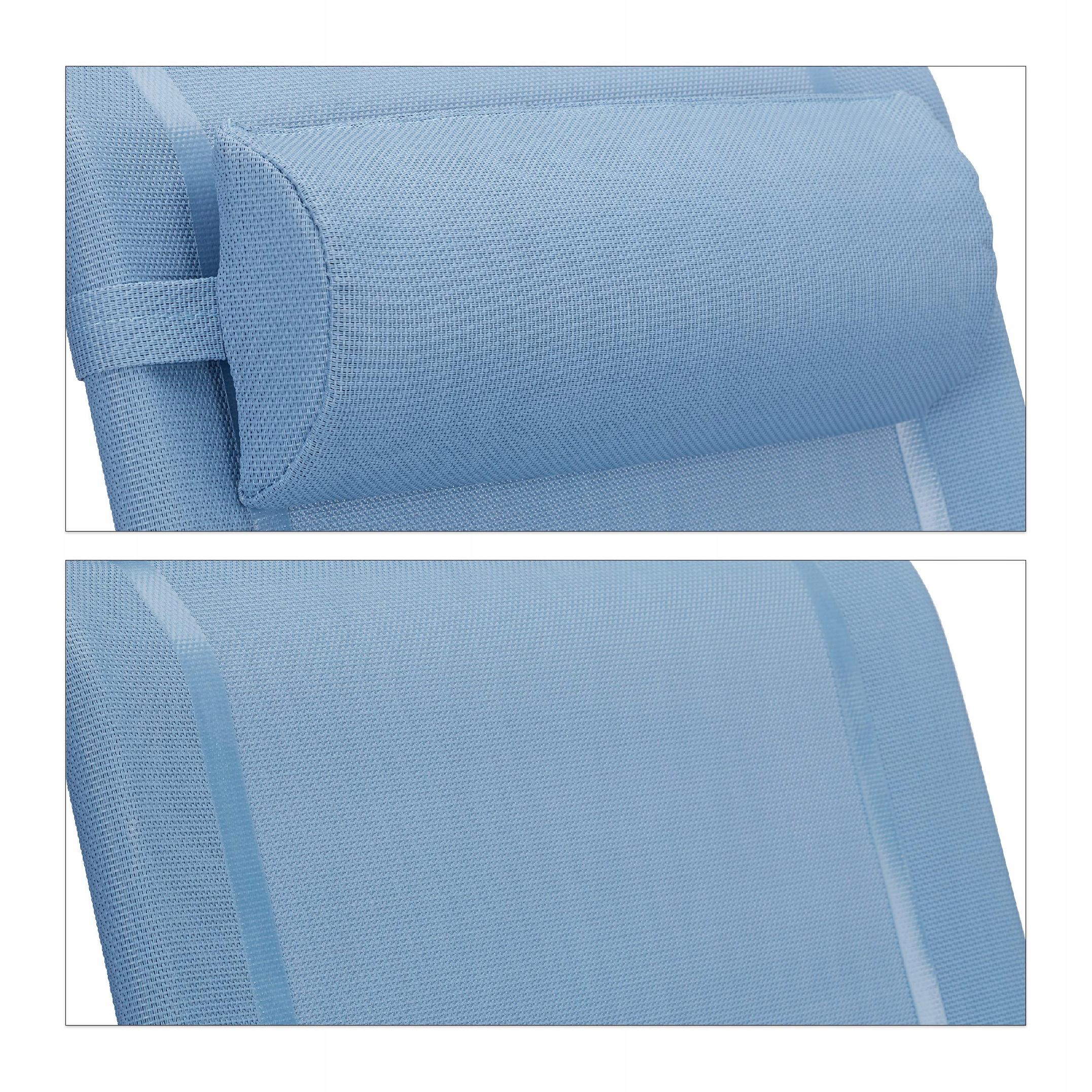 - punkt znaku wypunktowania: Uniwersalne: składane krzesło idealnie nadaje się do ogrodu, na kemping, plażę i wiele innych. – Z niebieską tkaniną poliestrową, Składane: krzesło kempingowe można w mgnieniu oka złożyć i złożyć – zajmuje mało miejsca podczas przechowywania, Plus poduszka pod kark: z poduszką pod kark dla większego komfortu – można ją dowolnie pozycjonować i zdejmować, Regulowane: krzesło składane przekonuje również jako leżanka ogrodowa – regulowane w 8 różnych stopniach (od A do h),