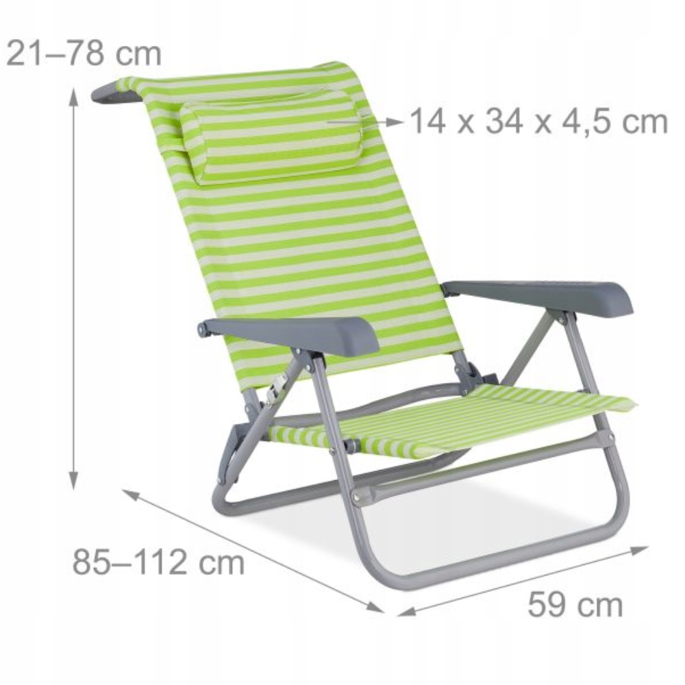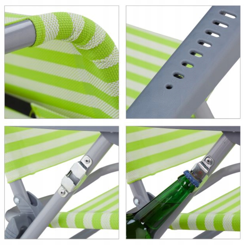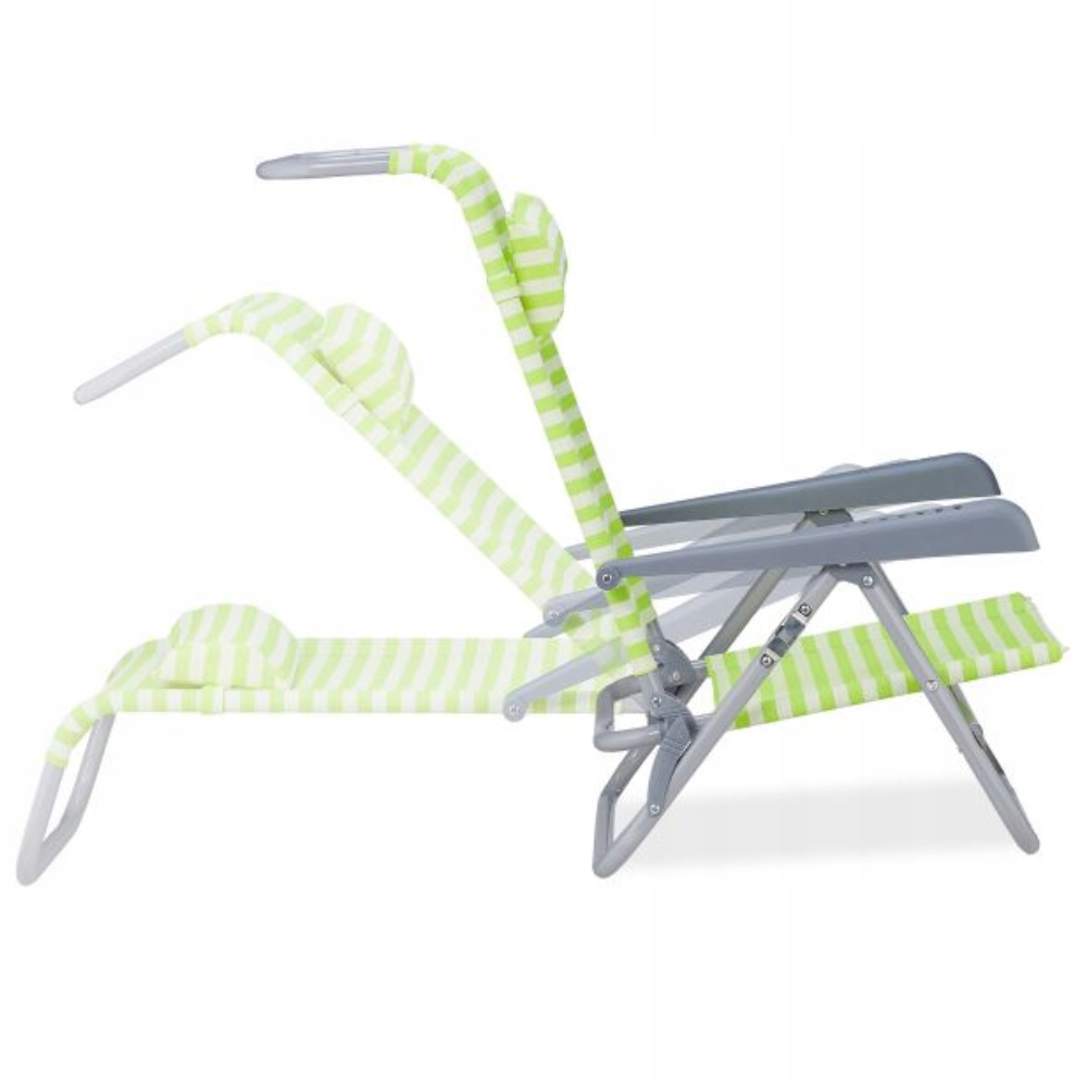✳️RELAXDAYS SKŁADANY LEŻAK OGRODOWY PLAŻOWY Z ZAGŁÓWKIEM W ZIELONE PASKI