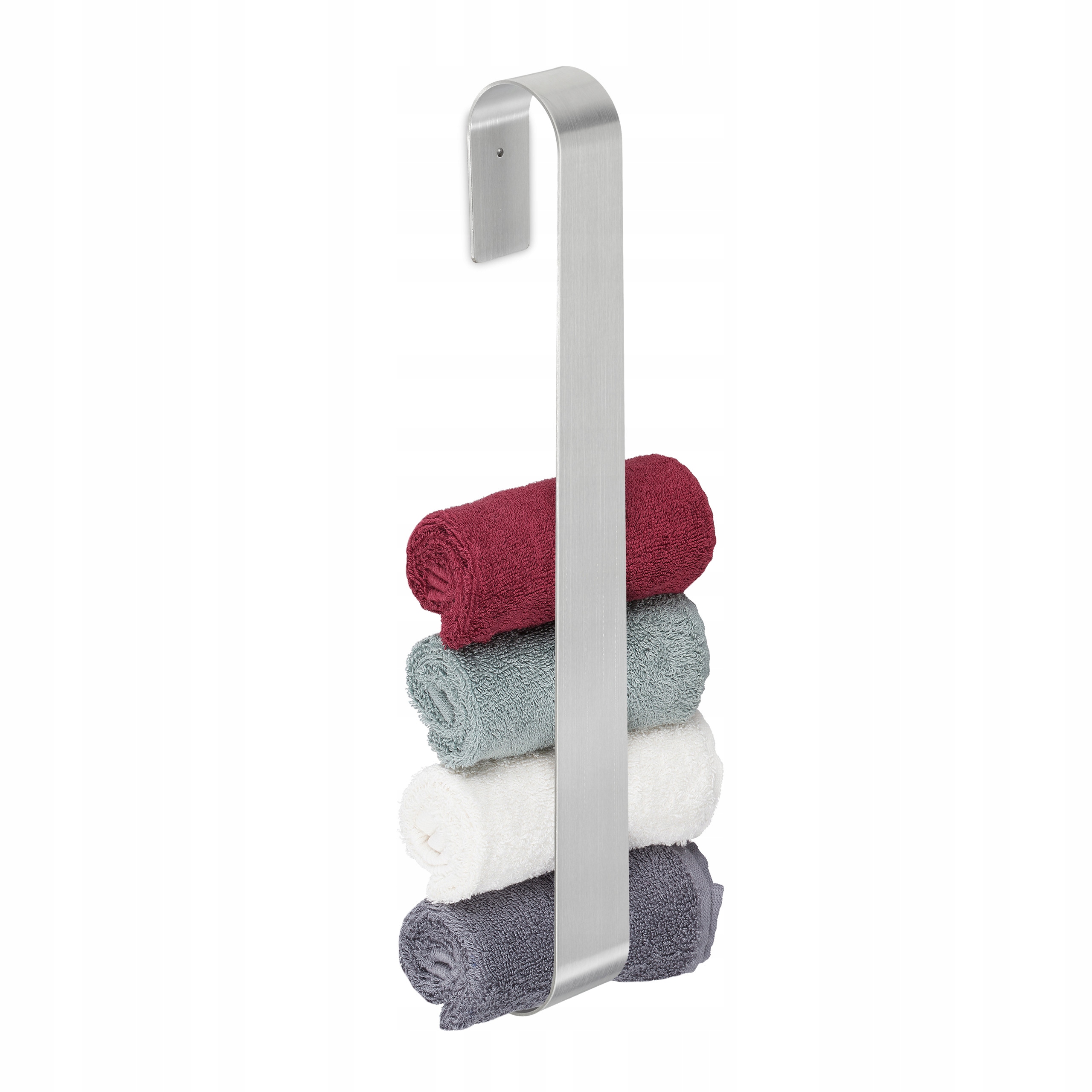 Wieszak ścienny ze stali nierdzewnej przekonuje funkcjonalnością i stylem. Zamontowany pionowo na ścianie, uchwyt na ręczniki pomieści zrolowane ręczniczki dla gości. Zamontowany poziomo na ścianie, zapewnia klasyczną suszarkę na ręczniki prysznicowe. Montuje się go na ścianie bez wiercenia, dzięki czemu jest szczególnie przyjazny dla najemców. Samoprzylepny pasek przylega bezpiecznie do czystych, gładkich powierzchni, takich jak płytki, metal i drewno.