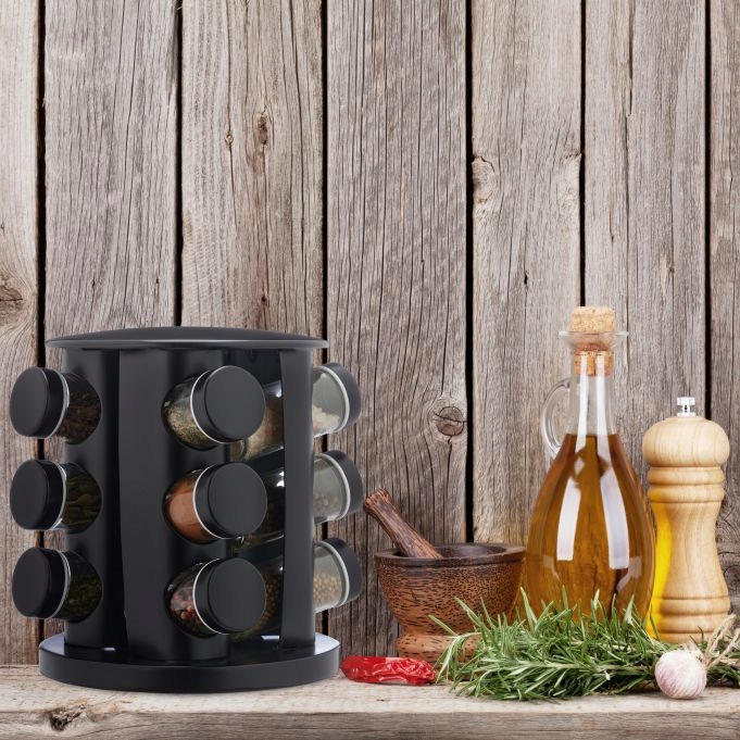 Stojak na przyprawy Przyprawnik 12 słoiczków czerń