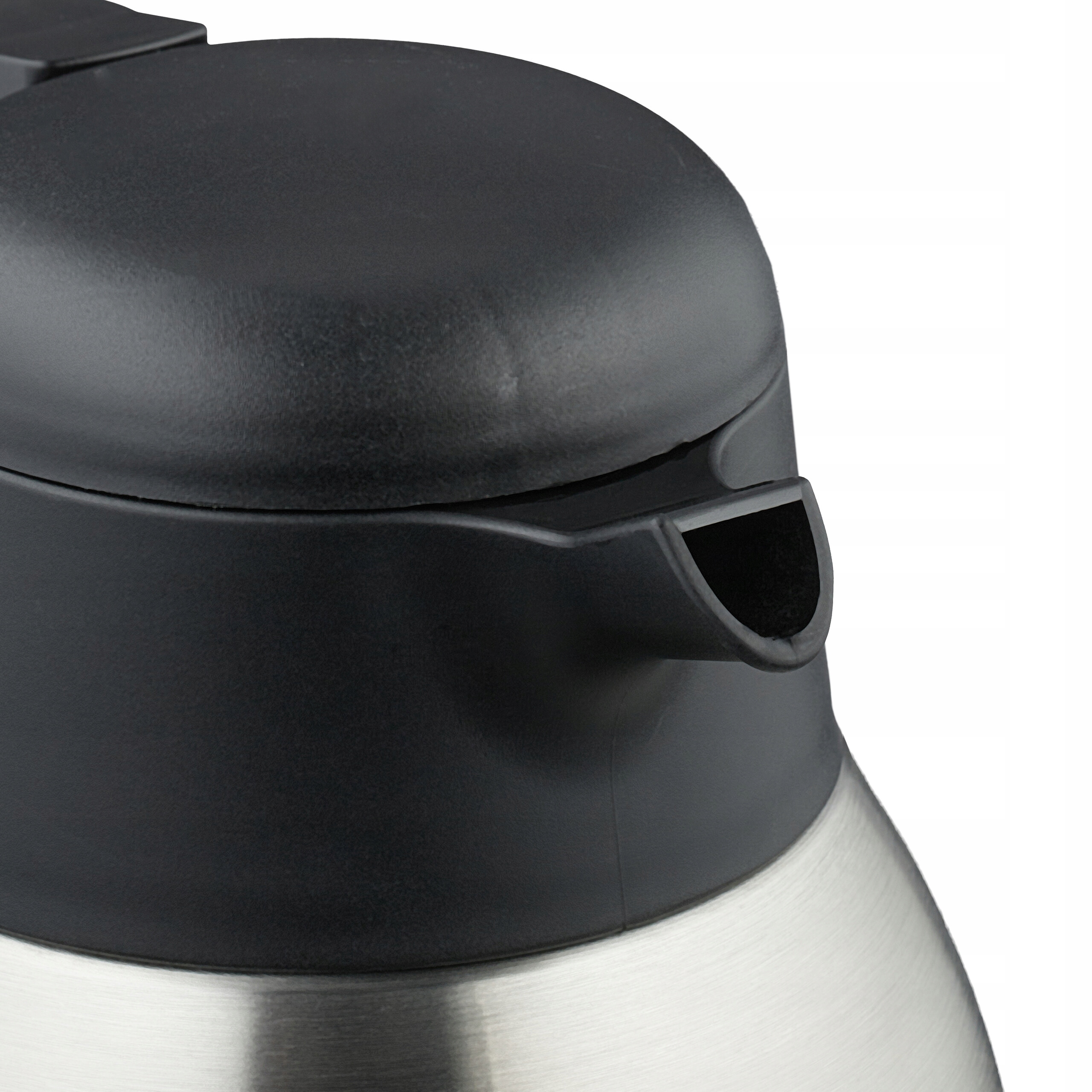 Dzięki temu podwójnemu, izolowanemu próżniowo dzbankowi termicznemu temperatura gorących i zimnych napojów zawsze pozostaje stała. Dzbanek może być używany uniwersalnie i nadaje się do wody, soków, herbaty i kawy. Dzięki dużemu uchwytowi, wąskiemu otworowi i przyciskowi do nalewania, karafka termiczna jest nie tylko niezwykle poręczna, ale także przyciąga wzrok swoją konstrukcją ze stali nierdzewnej. Po użyciu termos można łatwo wyczyścić ręcznie.Parametry dzbanka termicznego- wymiary z pokrywką: ok. 22 x 17,5 x 14 cm (wys. x szer. x dł.)- pojemność: ok. 1,5 l- waga: ok. 670 g- materiał: stal nierdzewna, tworzywo sztuczne- kolor: srebrny, czarnyKarafka termiczna wykonana ze stali nierdzewnej- utrzymuje temperaturę dzięki dwuściennej izolacji próżniowej- zachowuje ciepłą temperaturę przez 24 godziny, a zimną przez 12 godzin- przycisk ułatwia płynne serwowanie kawy, herbaty itp.