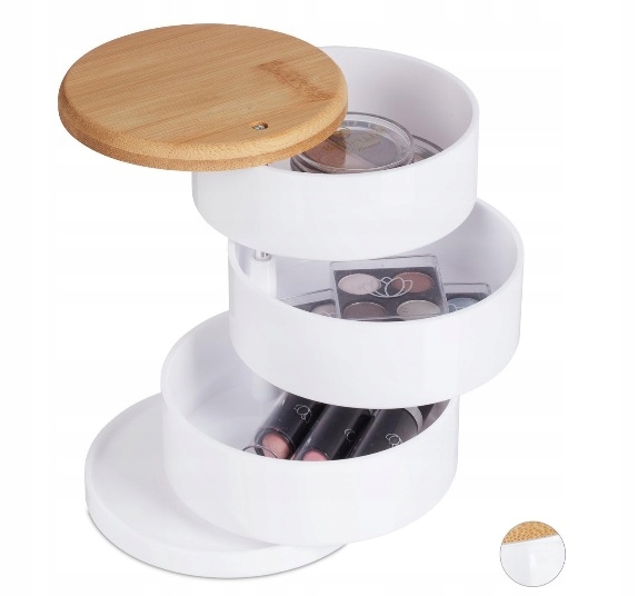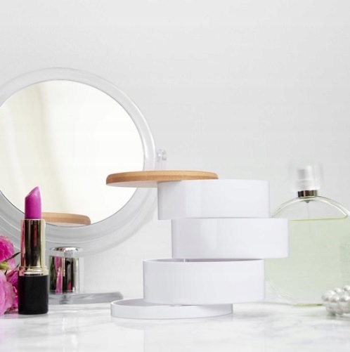 Okrągły organizer na kosmetyki z 3 obrotowymi poziomami