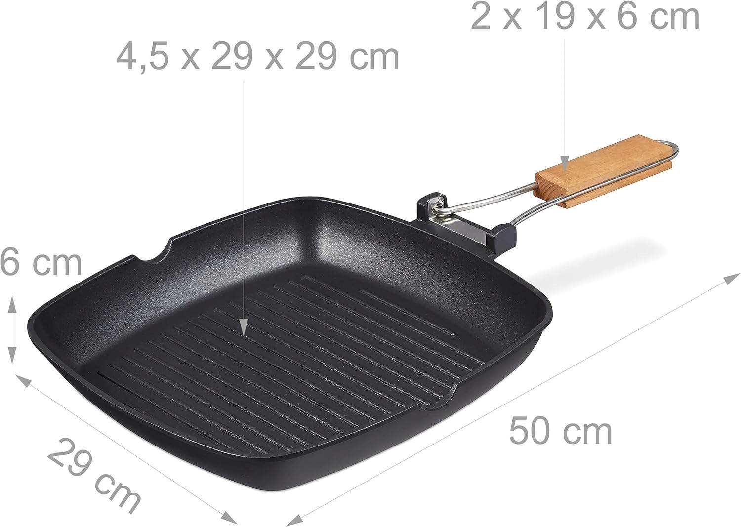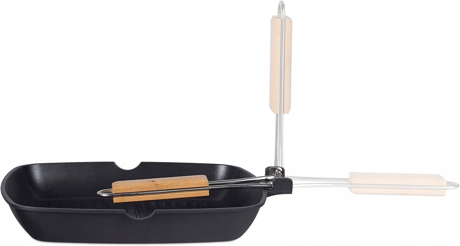 ✳️Relaxdays aluminiowa patelnia grillowa, 29×29 cm, nieprzywierająca, składany, zdejmowany uchwyt