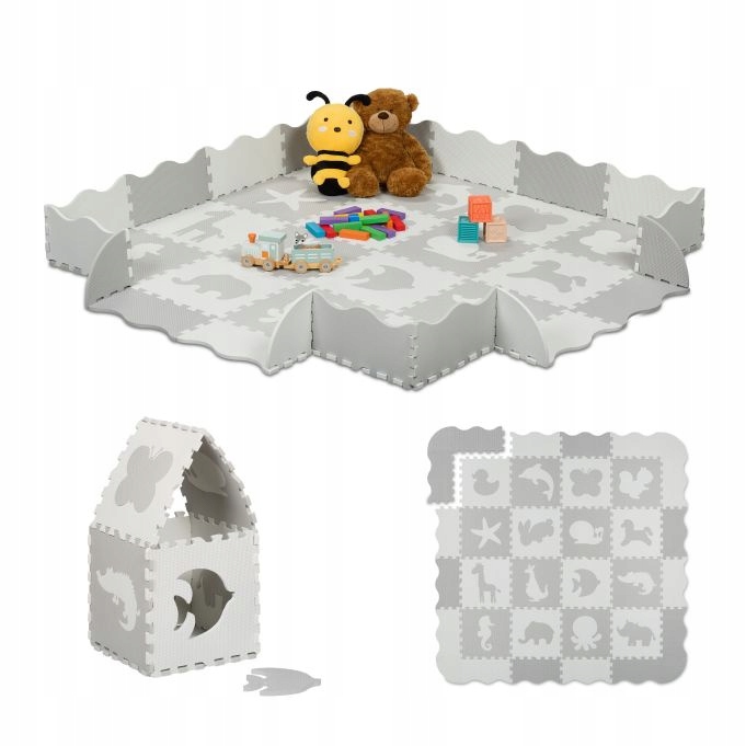 Mata składa się z 36 elementów, które łatwo się łączą, tworząc przestrzeń idealną do raczkowania, zabawy i rozwijania zdolności manualnych.