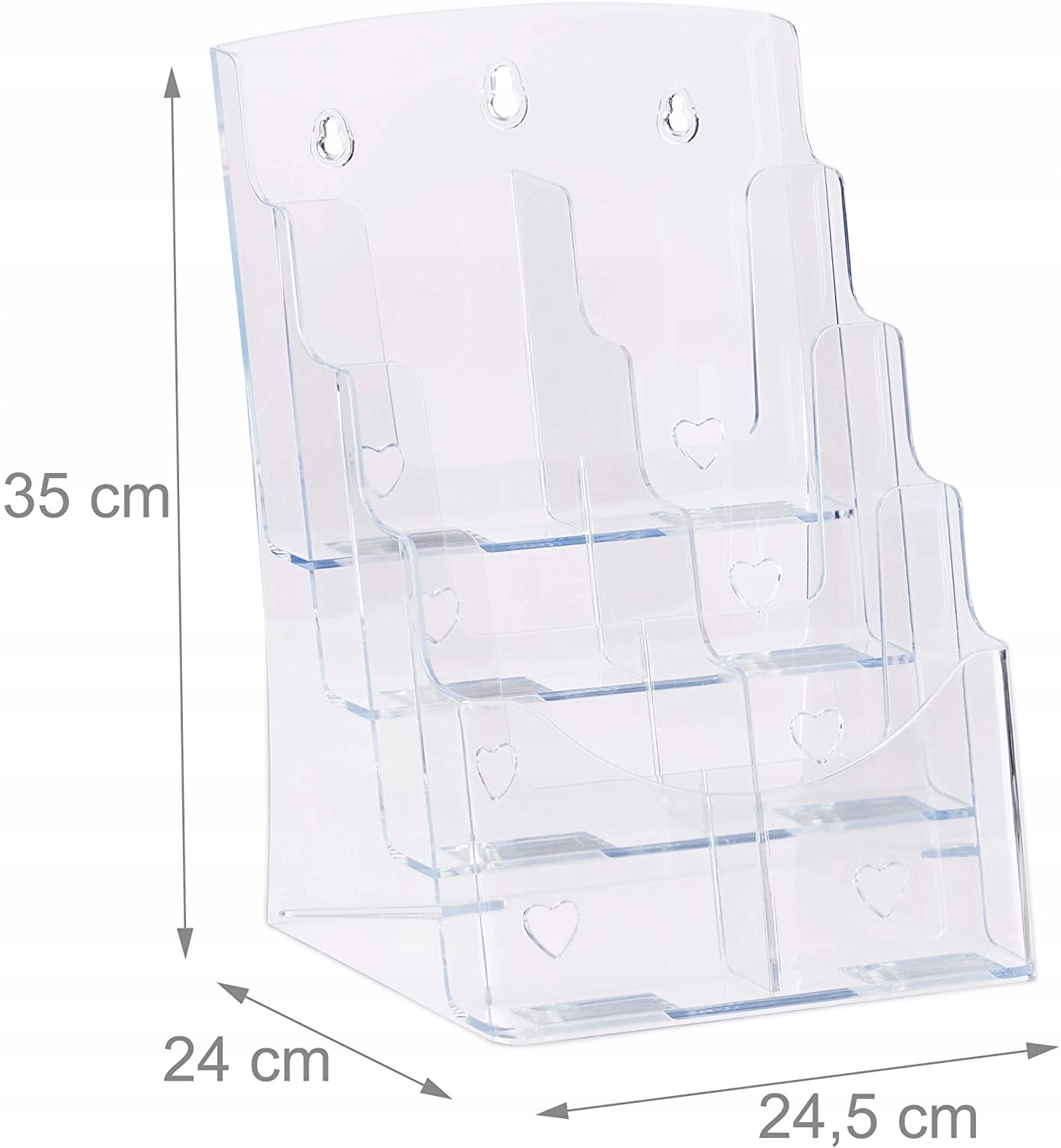 - ➡️Szczegóły: Wyświetlacz ulotek z 4 dużymi lub 8 wąskimi przegrodami – całkowity HBT ok. 35 x 24,5 x 24 cm