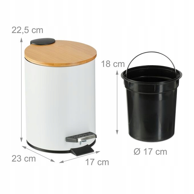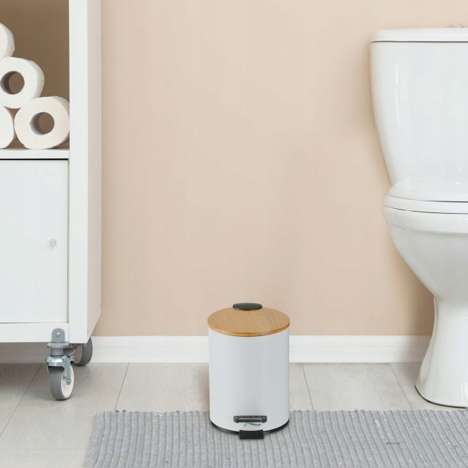 Odkryj elegancję i funkcjonalność z okrągłym koszem na śmieci, który doskonale komponuje się z wnętrzem Twojej łazienki czy toalety. Wykonany z matowego żelaza ze stylową bambusową pokrywą, ten kosz wygląda nowocześnie i oferuje higieniczne rozwiązanie do dyskretnego wyrzucania odpadów. Dzięki antypoślizgowemu pedałowi kosz można otworzyć bez użycia rąk, co zapewnia wygodę i czystość. Funkcja cichego domyku gwarantuje, że pokrywa zamyka się delikatnie, co dodatkowo podnosi komfort użytkowania. Wewnętrzny wyjmowany pojemnik ułatwia szybkie i łatwe opróżnianie. Wprowadź odrobinę nowoczesności do swojej łazienki!