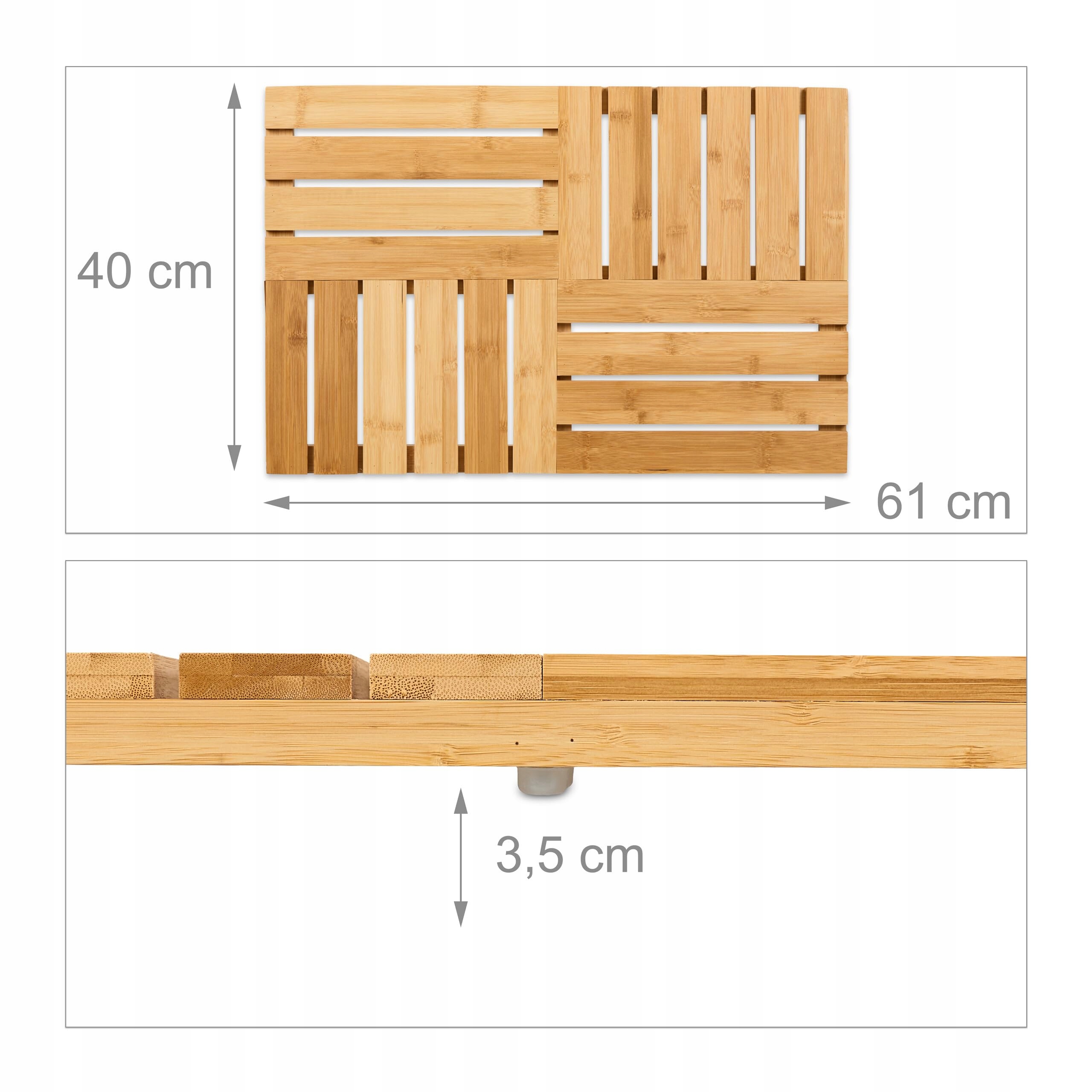 Relaxdays Bambusowa mata łazienkowa, 61 x 40 cm, antypoślizgowa mata prysznicowa do wanny, prysznica, sauny, wewnątrz i na zewnątrz, naturalna