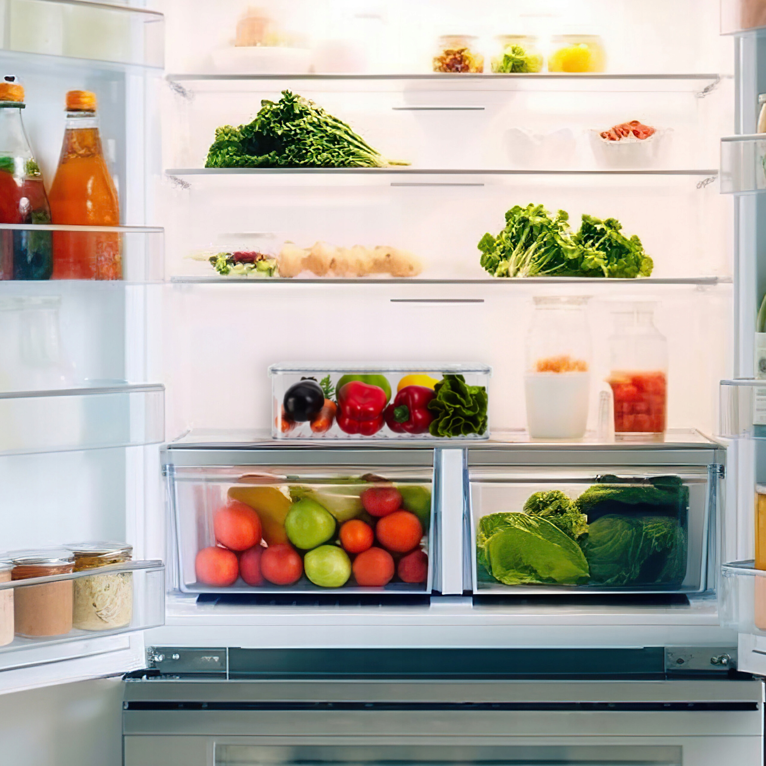 Doskonały sposób na utrzymanie porządku w lodówce! Ten przezroczysty organizer na lodówkę zapewnia przejrzyste przechowywanie żywności, dzięki czemu zawsze łatwo znajdziesz to, czego potrzebujesz. Zestaw zawiera 2 wkłady z pokrywką i datą, idealne do zachowania świeżości i trwałości produktów. Wygodny w użyciu i łatwy do utrzymania czystości.