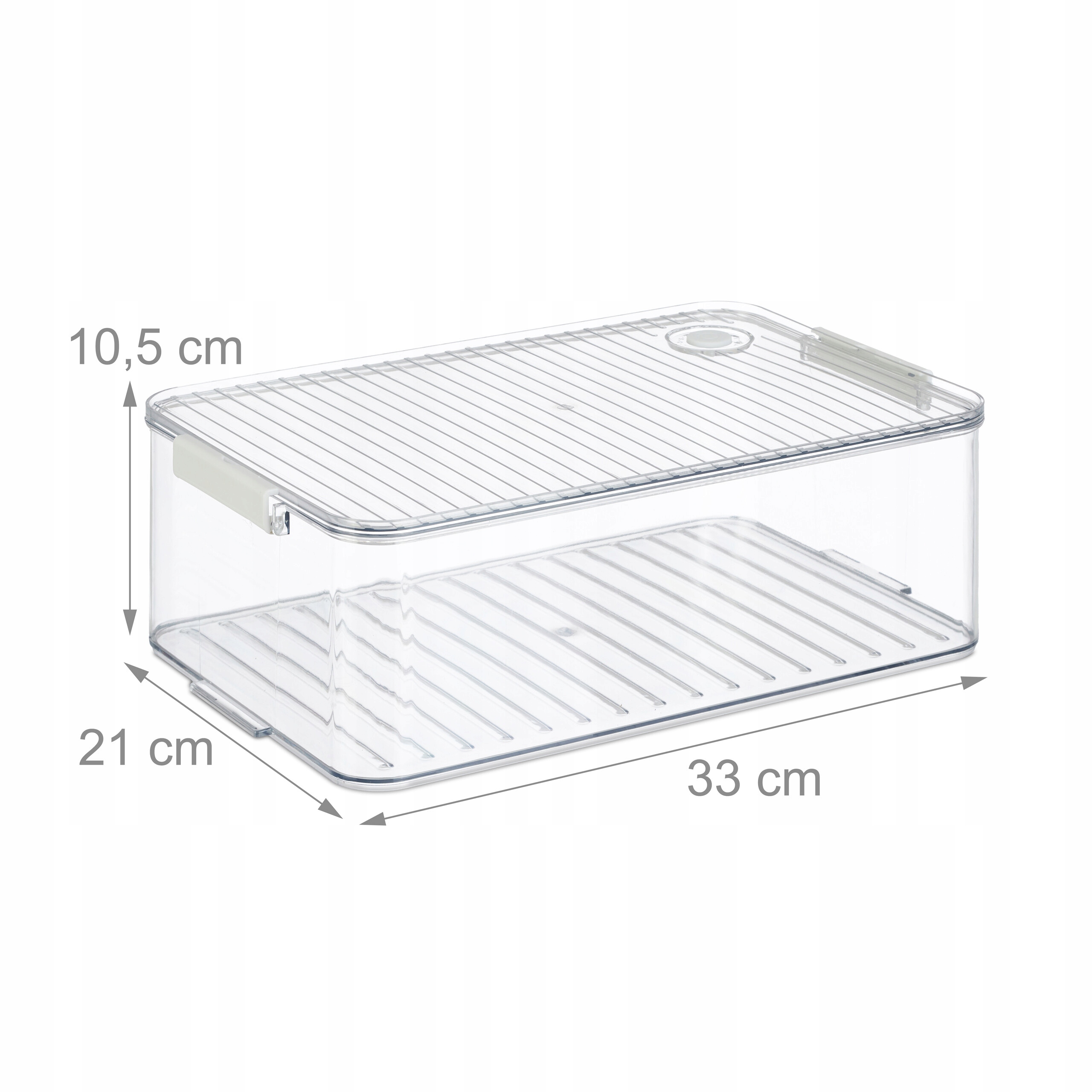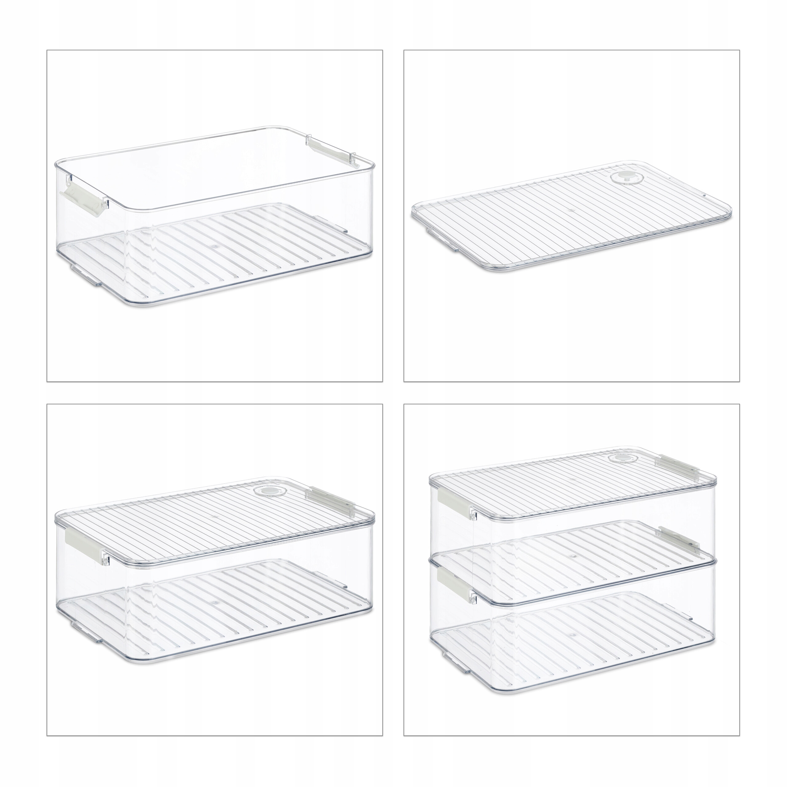 Relaxdays Organizer na lodówkę, zestaw 2 sztuk, wkładki do lodówki z pokrywką i datą, wys. x szer. x gł.: 10,5 x 21 x 33 cm, przezroczysty