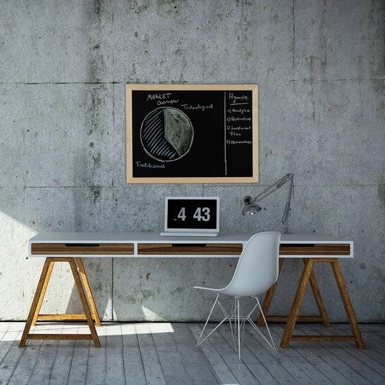 Zorganizuj swój dzień w biurze za pomocą poręcznej tablicy notatek! Zmywalna tablica doskonale sprawdzi się jako planer tygodniowy lub do zapisywania bieżących spraw do załatwienia. Dzięki dostarczonemu materiałowi tablicę można szybko zawiesić i przygotować do użycia. Dodatkowo tablica na notatki wyróżnia się ramą z naturalnego drewna sosnowego. Przekonaj się i wykorzystaj tablicę do spotkań lub jako osobistą tablicę na notatki!